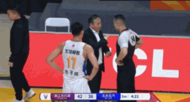 翟曉川被布朗突破打中臉部,翟曉川反而被吹罰阻擋犯規,北京主帥與裁判溝通無果后申請挑戰失敗。