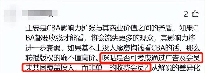 有網友分析,咪咕與CBA合作多年,大概率不會徹底退出。
