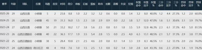 本賽季至今,張寧為山西隊出戰(zhàn)5場首發(fā)2次,場均上陣23.6分鐘,得到8.8分3.2板3.2助,三項命中率40%、27.3%和60%,場均得分自菜鳥賽季以來新低,去年夏天簽下三年D類頂薪大合同。