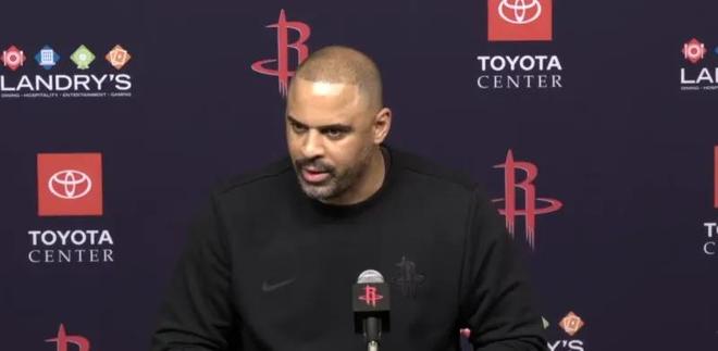 火箭的防守強度和身體對抗也明顯提升,他們不怕快船的單核攻堅,卻能有效限制缺乏體系的進攻。賽后,杜蘭特接受采訪時被問及兩隊前后變化,他直言不諱地提到了哈登的價值。