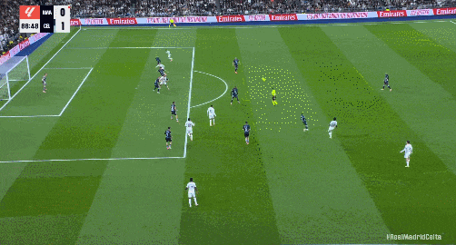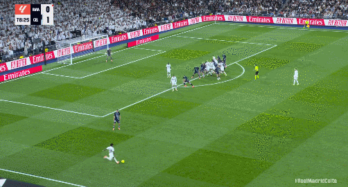 78’皇馬前場任意球開到禁區內亂戰造險;