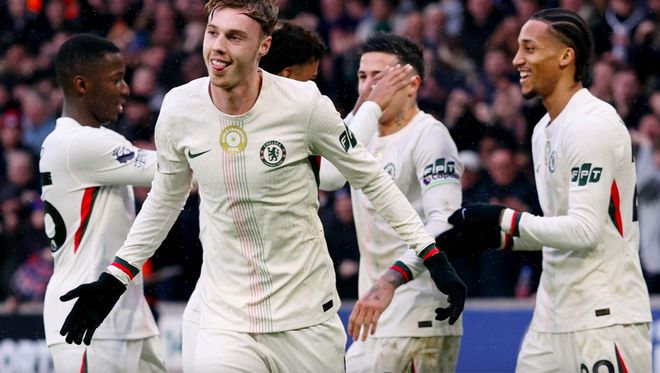 第38分鐘,內托將球分到左路,恩佐送出妙傳,庫庫雷利亞倒三角傳中,帕爾默輕松破門。