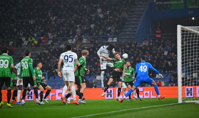 第41分鐘,薩索洛門前亂戰(zhàn)中打進(jìn)一球。但經(jīng)VAR檢查,此球越位在先,無效!