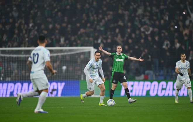 第54分鐘,迪馬爾科完成助攻帽子戲法,他開出角球后阿坎吉門前接應(yīng)頭球破門,4比0!這也是瑞士國(guó)腳的藍(lán)黑軍團(tuán)首個(gè)進(jìn)球。隨后薩索洛球員馬蒂奇因?yàn)椴粷M裁判判罰,累積兩張黃牌被罰下。