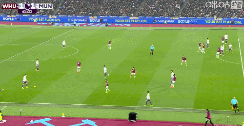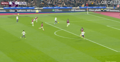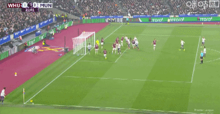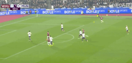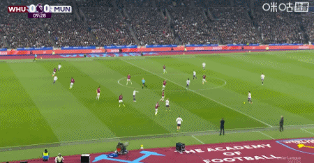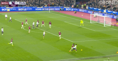 第49分鐘,紹切克門前插上搶點推射破門,西漢姆聯1-0曼聯