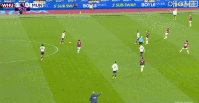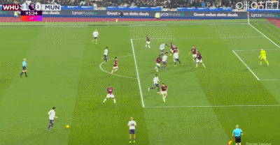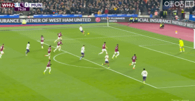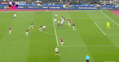 第90+5分鐘,謝什科禁區腳后跟破門,曼聯1-1扳平西漢姆聯