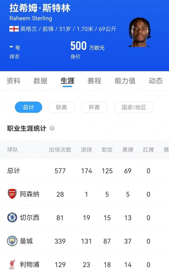 兩個賽季,81場比賽,19球15助攻。數據不算災難,但遠未匹配他的身價與周薪。切爾西的混亂周期吞噬了太多球員,斯特林是其中之一。他在斯坦福橋從未找到曼城時期那種穩定輸出的節奏,突破成功率下降,決策速度遲緩,爆發力出現肉眼可見的衰減。
