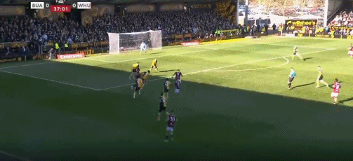 第33分鐘,伯頓球員禁區內射門,球被阿雷奧拉撲住