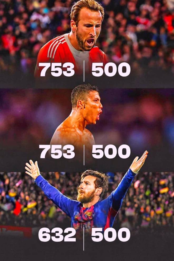 大英帝星用了743場比賽轟入500球,進球效率排在第二;那排在他前面的又有誰呢?自然就是球王梅西啦,他僅用了632場完成500球的里程碑,足足比凱恩少了111場比賽;第三人則是已經打進了962球的C羅,葡萄巨星雖然是足壇進球歷史第一人,但是在500球里程碑,他勝了753場,比凱恩還多了10場。
