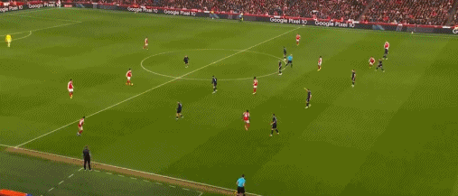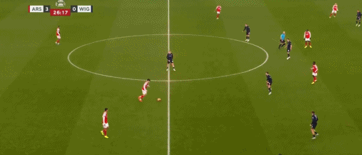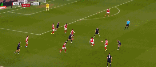 第27分鐘,打花了,內爾高長傳,熱蘇斯單刀破門,阿森納4-0維岡競技