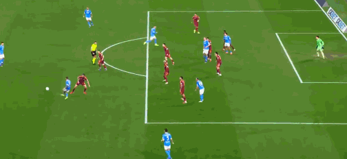 第40分鐘,扳平比分,斯皮納佐拉遠(yuǎn)射,皮球折射入網(wǎng),那不勒斯1-1