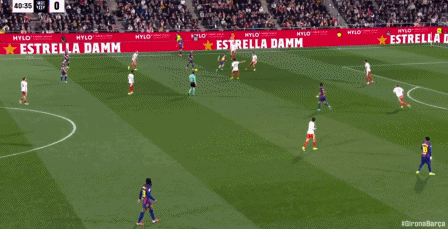 第34分鐘,拉菲尼亞直塞,費爾明小角度打門踢飛