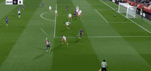 第28分鐘,巴薩前場搶斷,拉菲尼亞面對三人防守,一腳怒射,皮球稍稍高出。