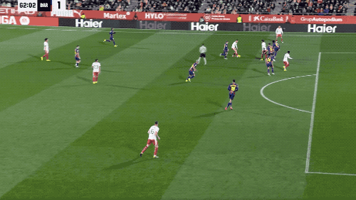 第24分鐘,拉菲尼亞接球后的停頓攪亂了赫羅納的防守,費蘭·托雷斯兜射遠角,皮球稍稍偏出。